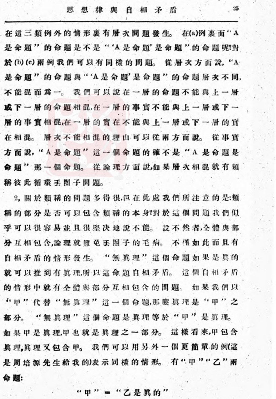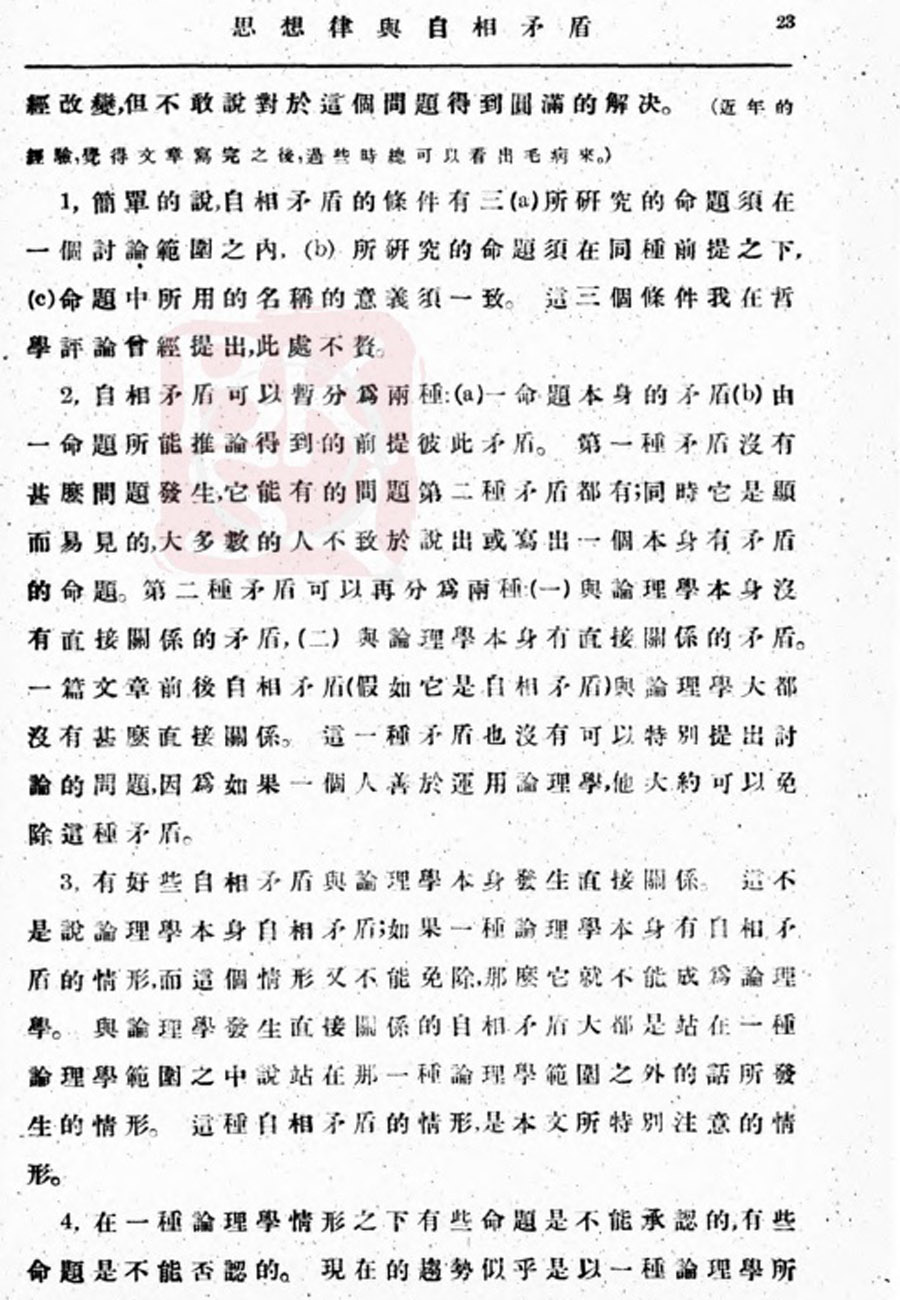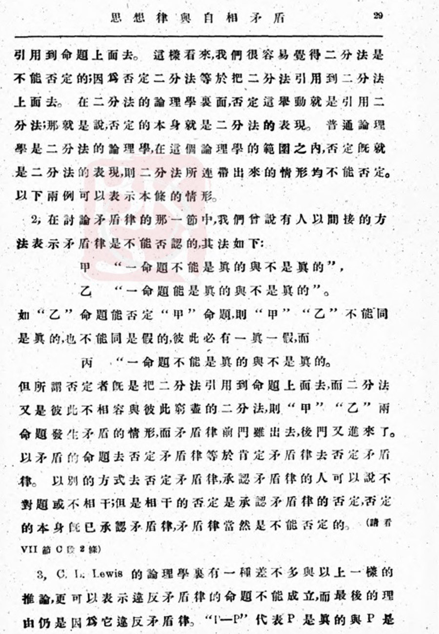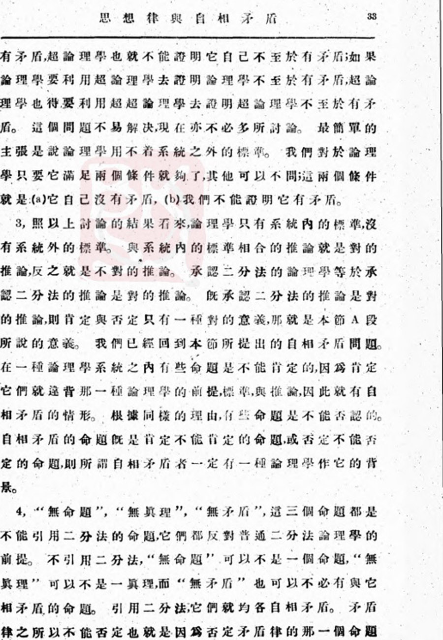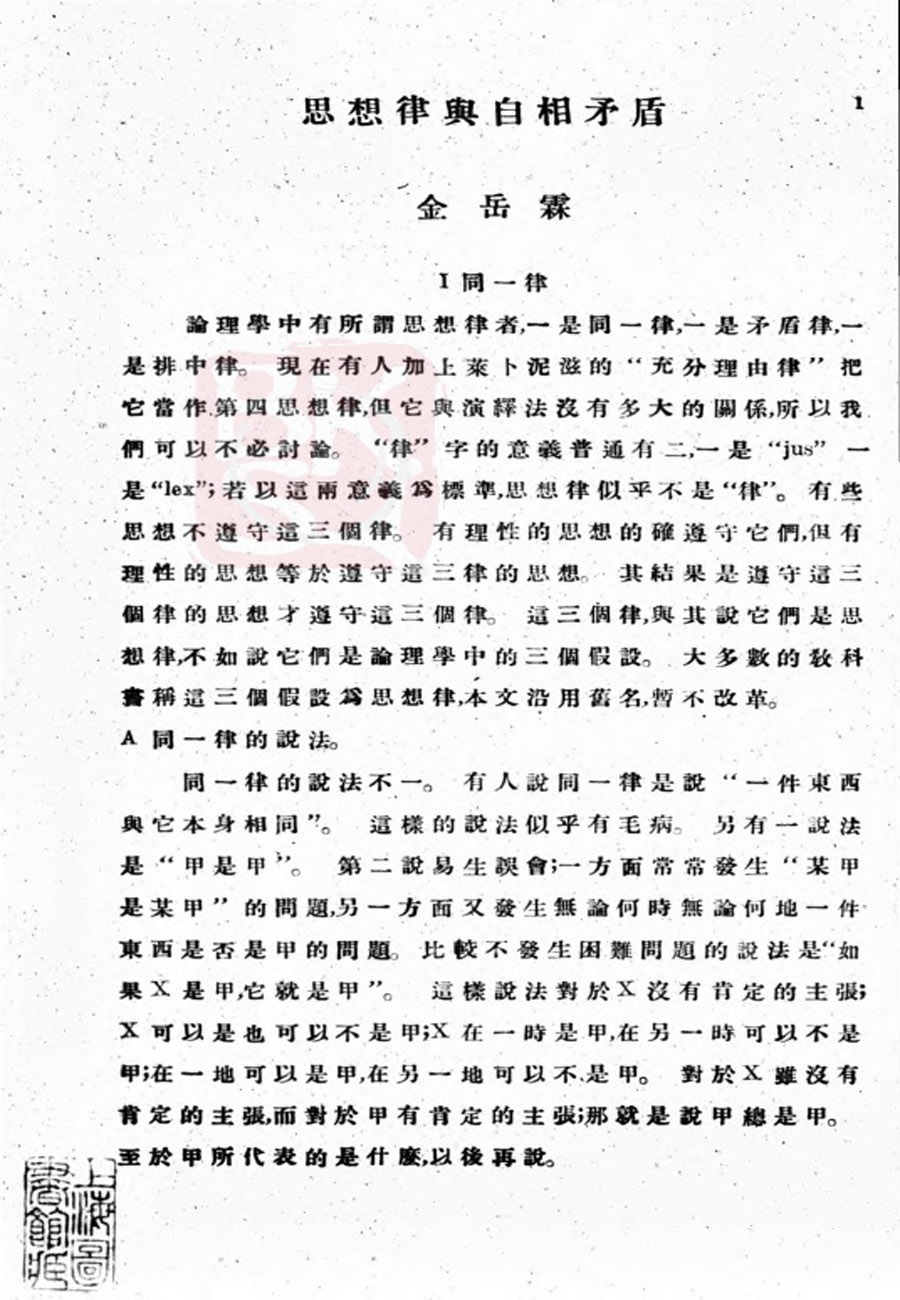 【金岳霖】思想律与自相矛盾