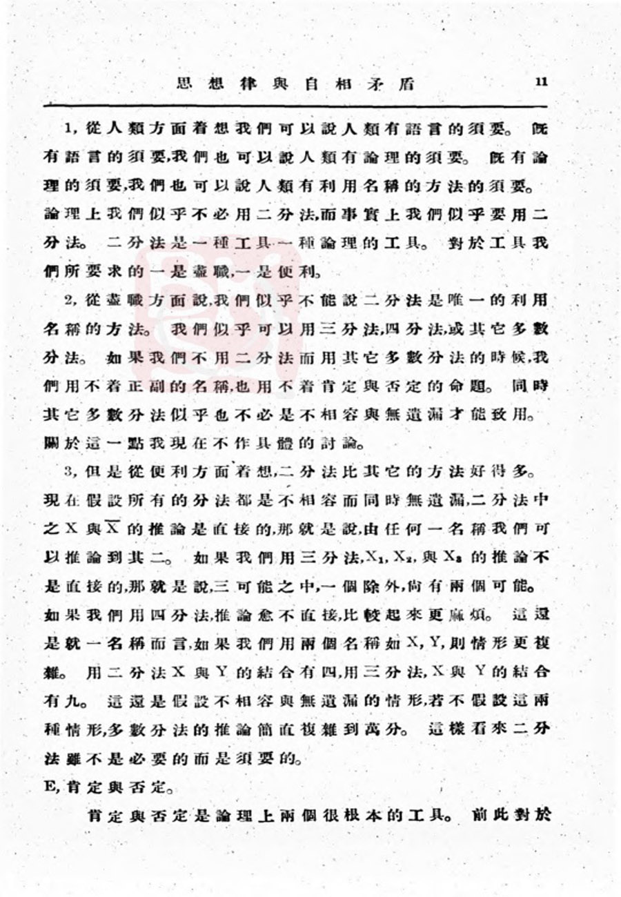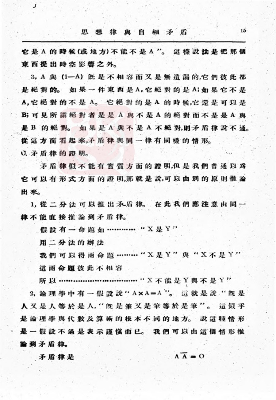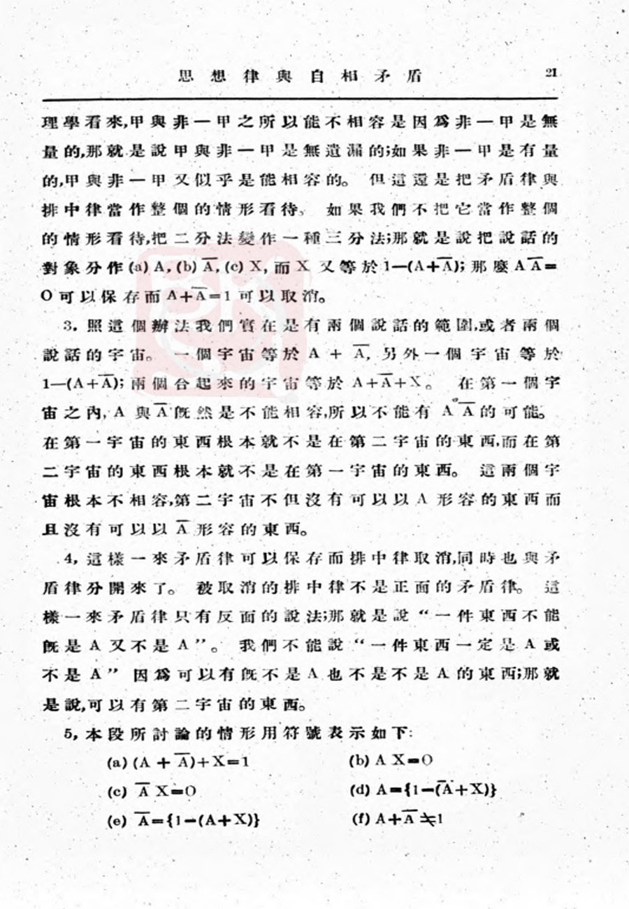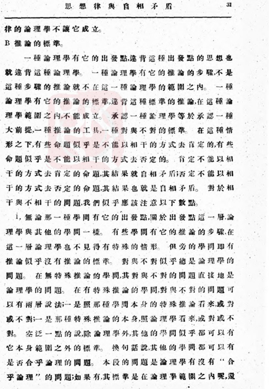 【金岳霖】思想律与自相矛盾