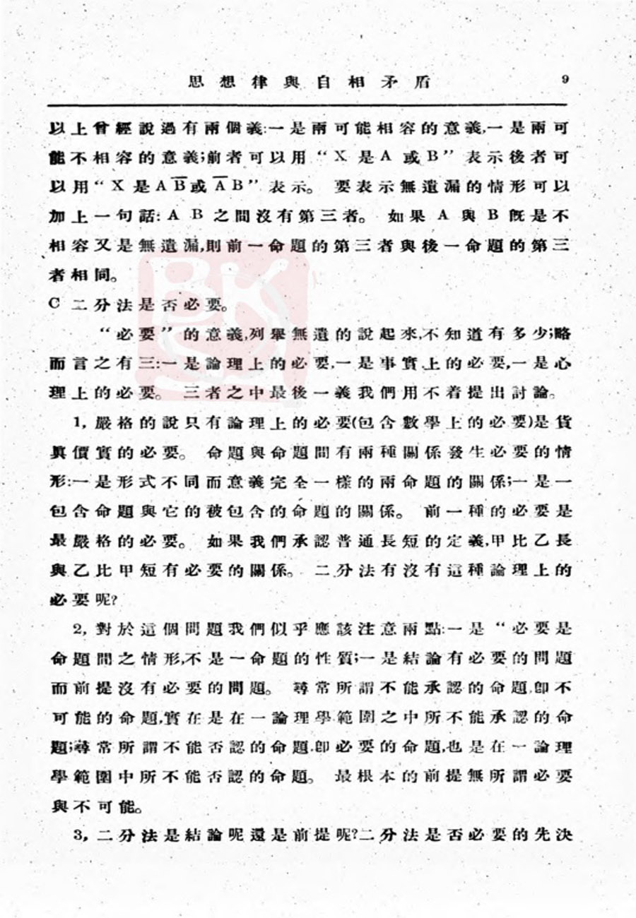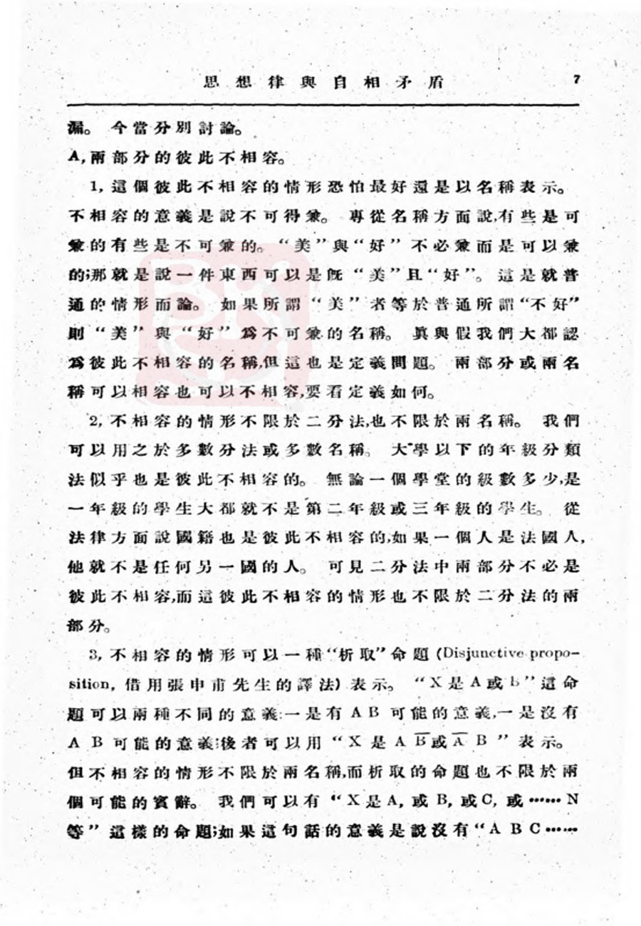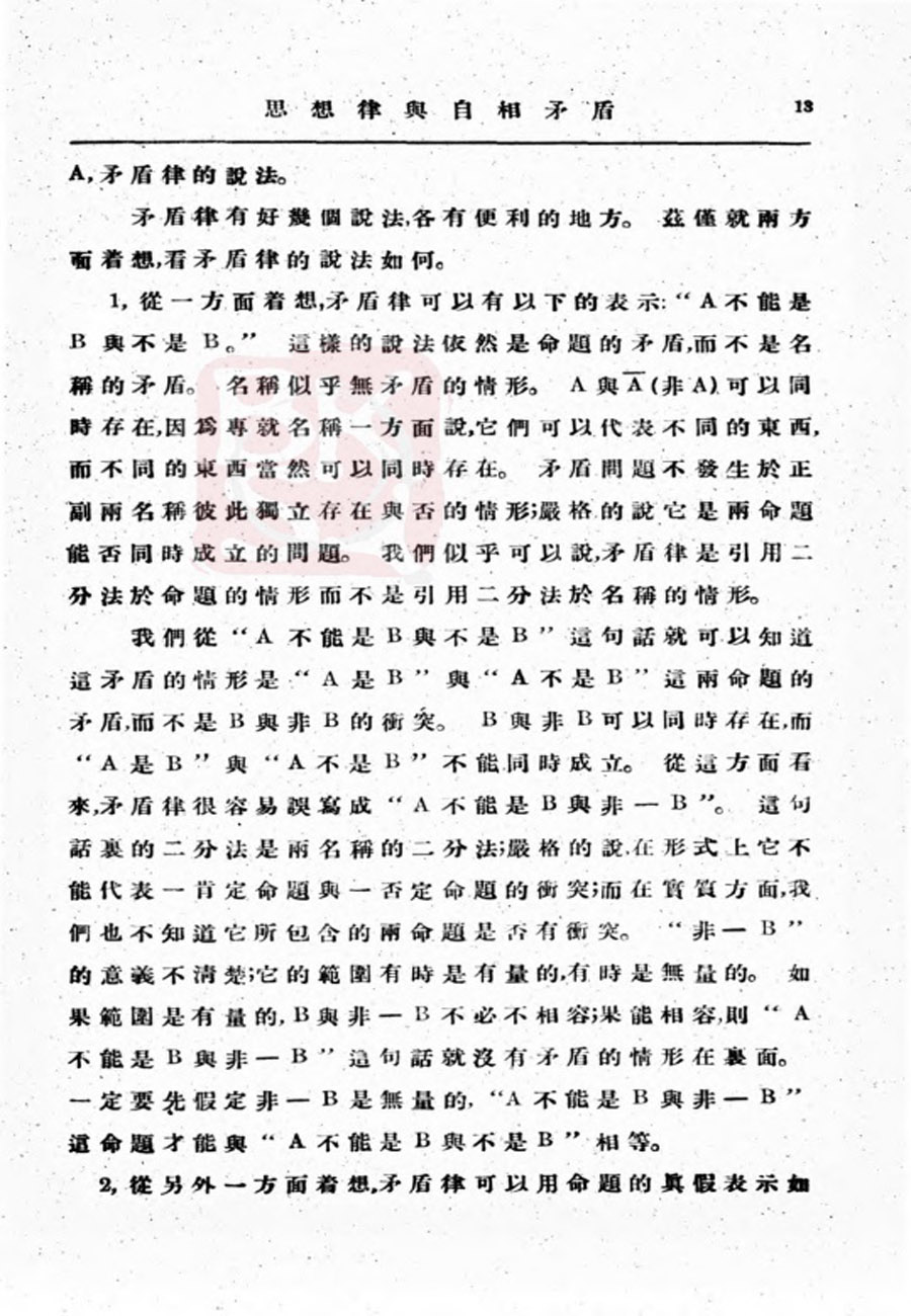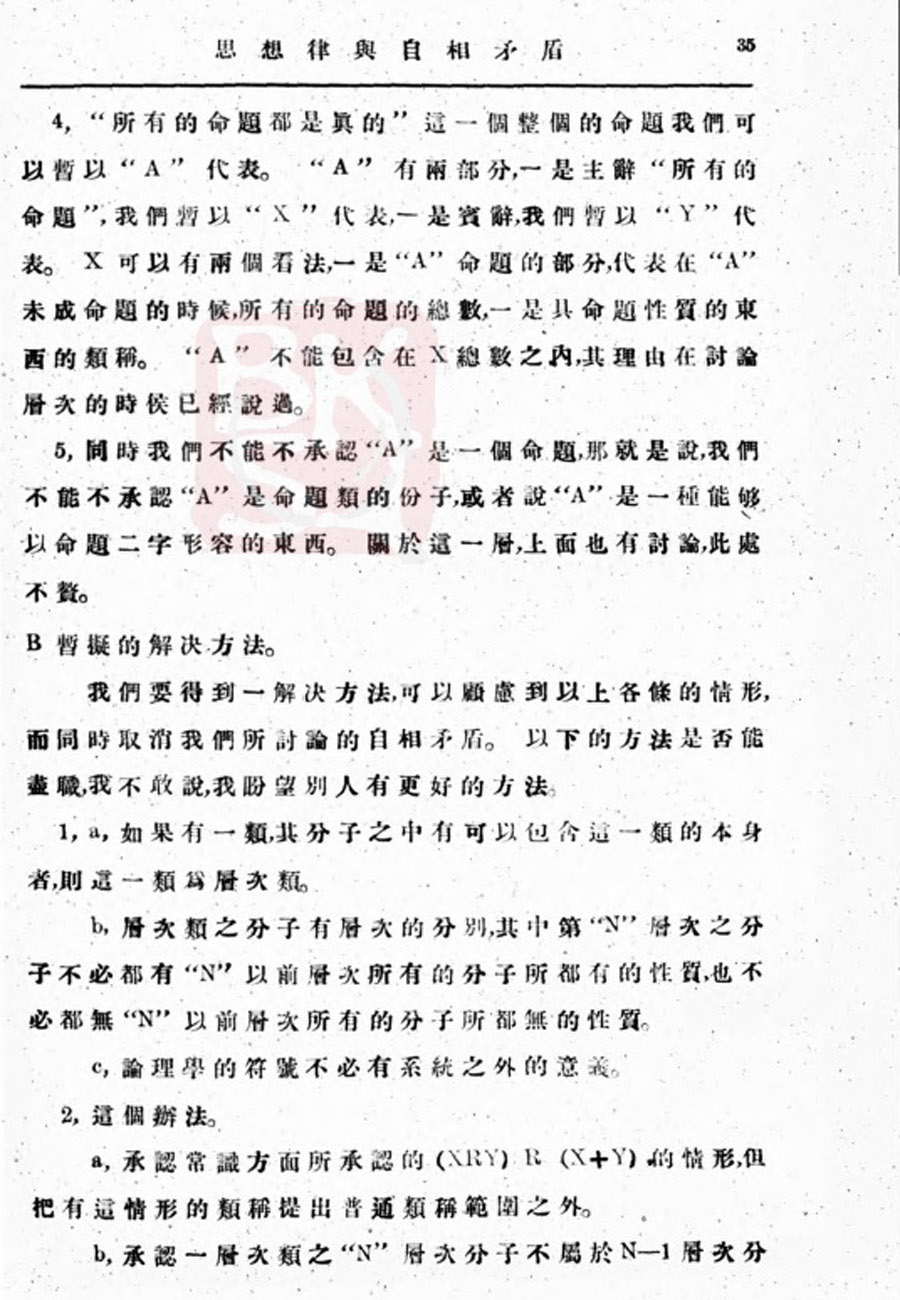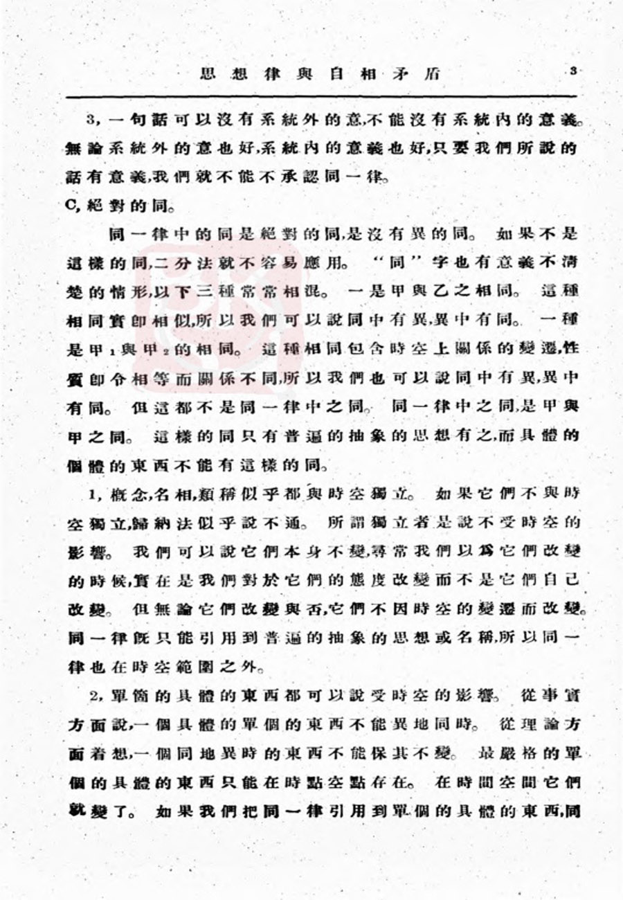 【金岳霖】思想律与自相矛盾